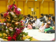 また今回はクリスマスが近いこともあり、会場はクリスマスの飾り付けが行われました。お子さんはツリーをみつけると、寄ってきていっぱいさわっていました。